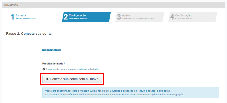 3. No Passo 2, clique no botão Conecte sua conta com a Hub2b.
