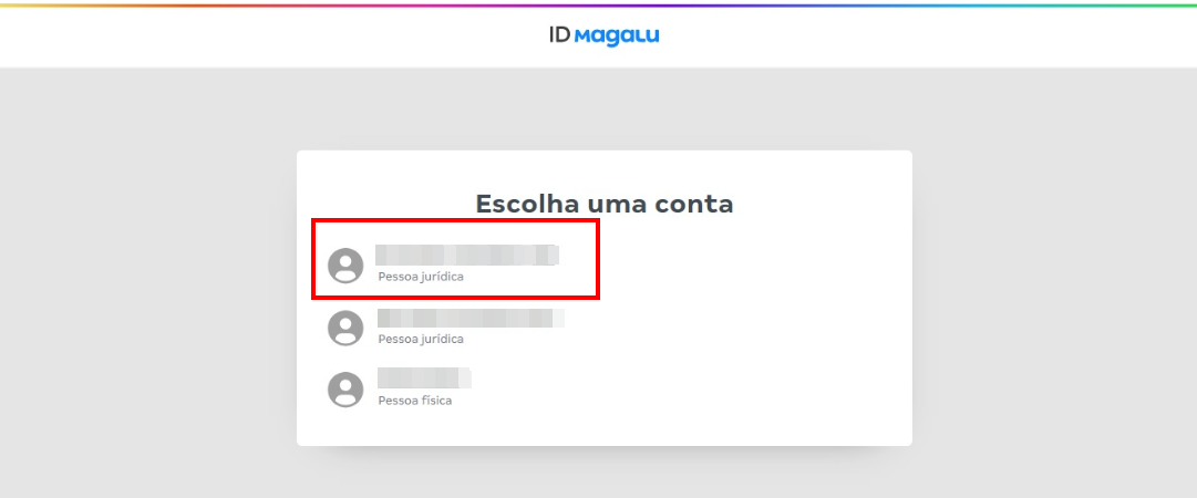 Se você não souber qual é a conta administradora com perfil de Pessoa Jurídica, será necessário entrar em contato com o suporte da Magazine Luiza para obter auxílio nessa identificação.