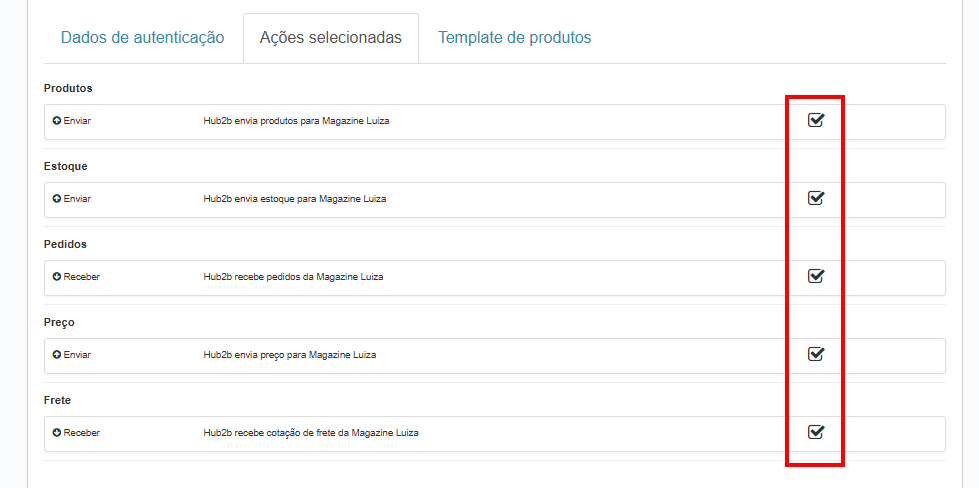 4. No Passo 3, selecione todas as ações que serão realizadas nessa integração e clique em Salvar.